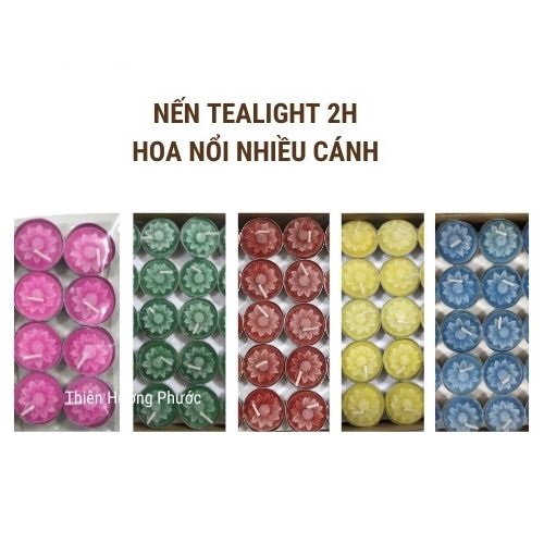 hạn chế tiêu cực: Nến tealight hoa nổi nhiều cánh 5 màu
